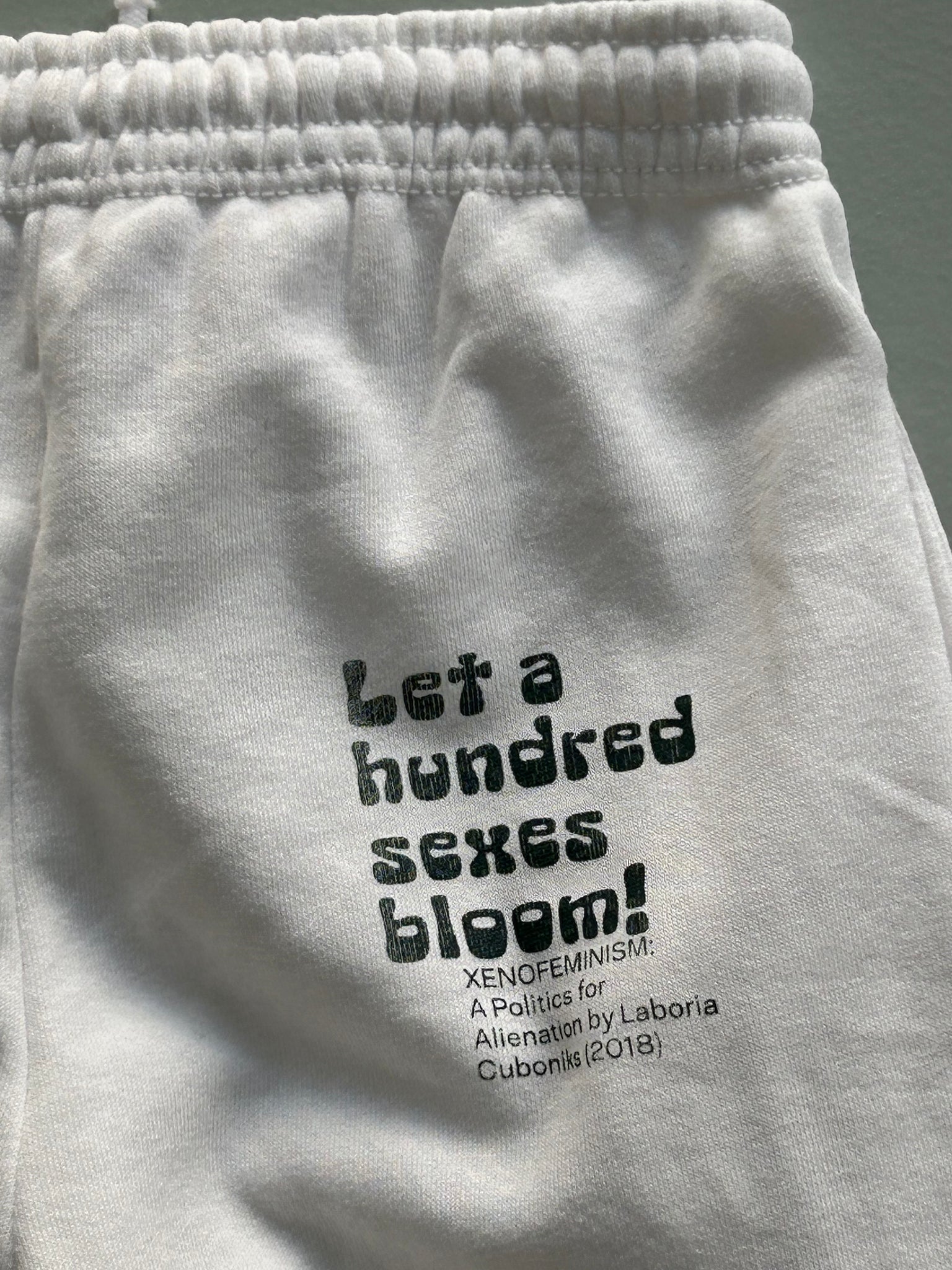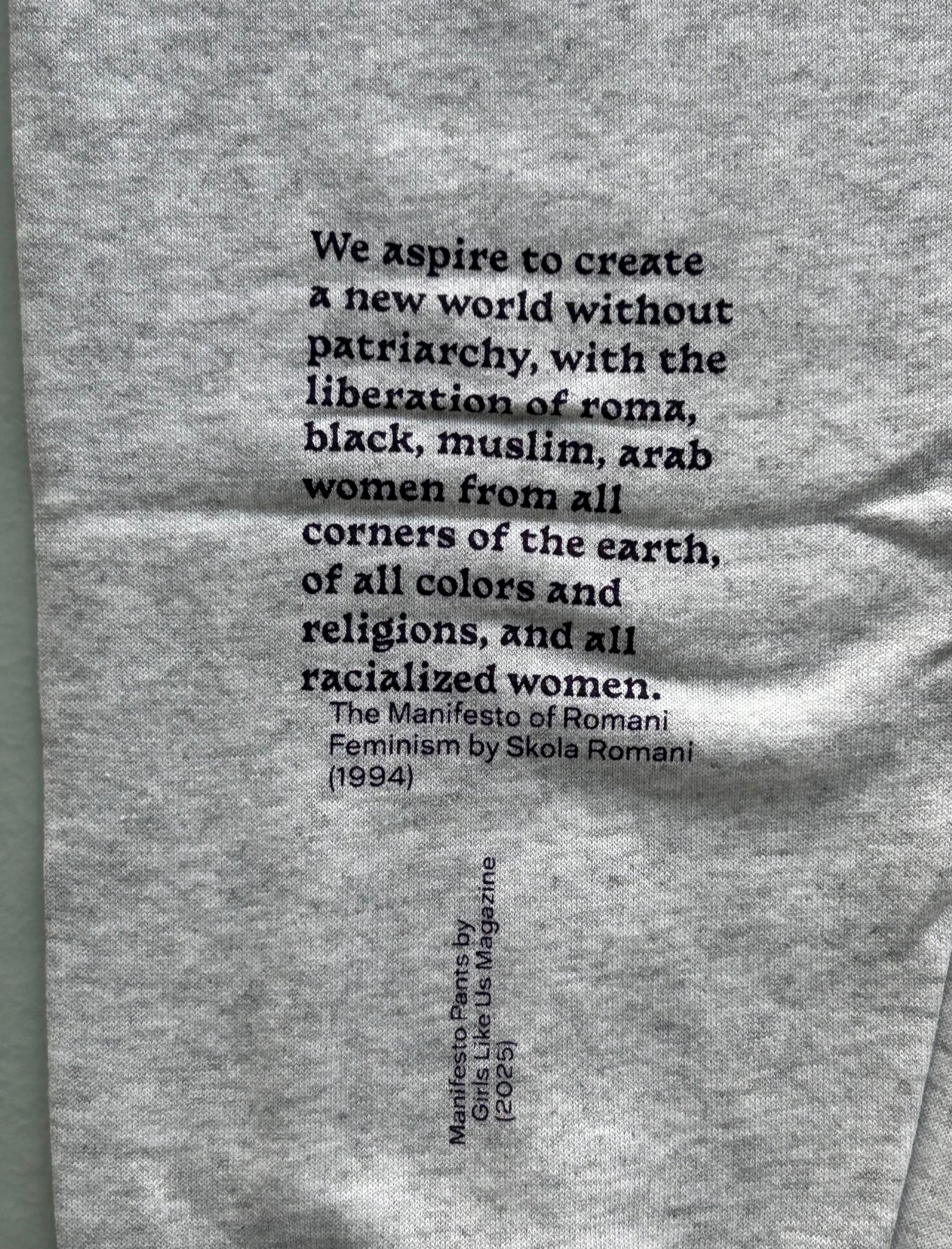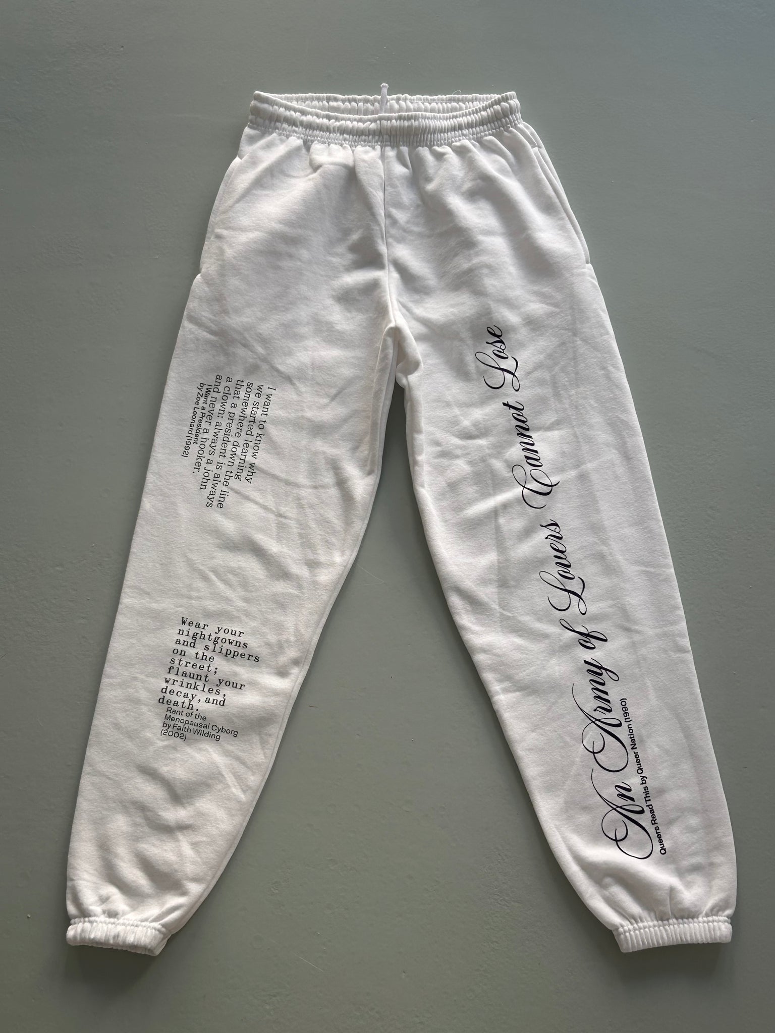 Wear your revolution! Handprinted unisex jogging pants featuring quotes from 'Love and Lightning. A Collection of Queer and Feminist Manifestos'